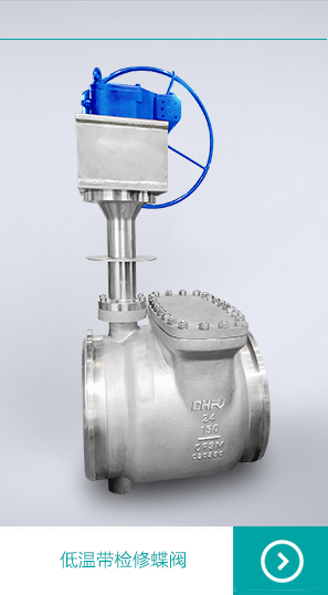 低溫帶檢修蝶閥是一種三偏心密封蝶閥,其密封面采用圓錐面型式,在水平中心上有一個角度偏心,閥桿相對于流道中心在其軸向和徑向上有兩個距離偏心,密封副為獨立可拆卸結構,低溫工況下變形量近似一致,保證良好的密封,并且可以實現內件的快速更換和維修。